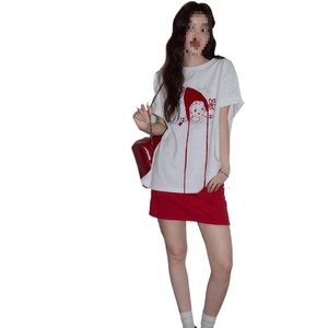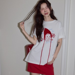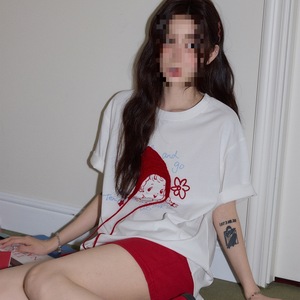 白色小红帽女孩短袖T恤女夏日慵懒宽松休闲设计感半袖上衣