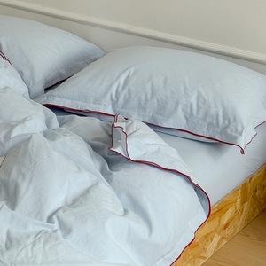 色织水洗棉全棉四件套 跳色拷边工艺款日式透气纯棉被套床单床笠