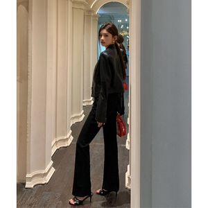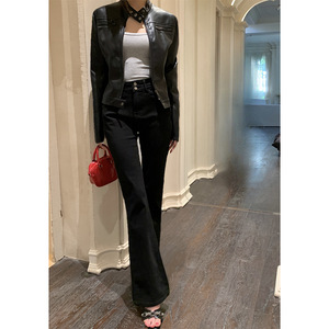 2025秋冬新款 黑色微喇裤设计感修身显瘦显高长裤女高腰牛仔裤