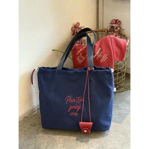 韩系字母刺绣帆布包2025新款大容量抽绳单肩托特包小众通勤上课包
