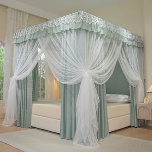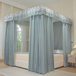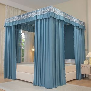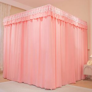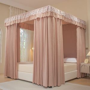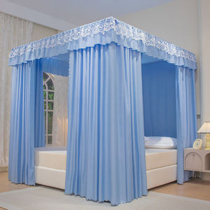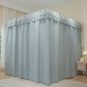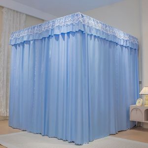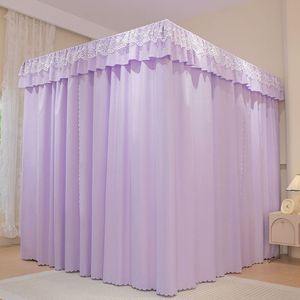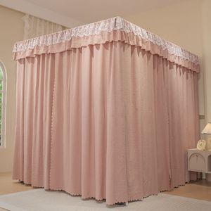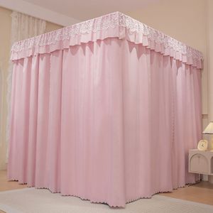 物理遮光床帘蚊帐一体式家用卧室落地保暖床幔带支架全封闭防尘顶