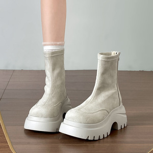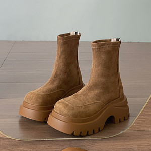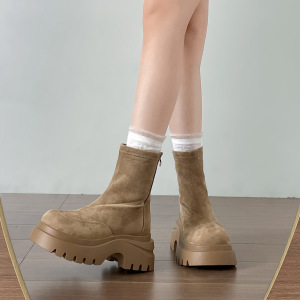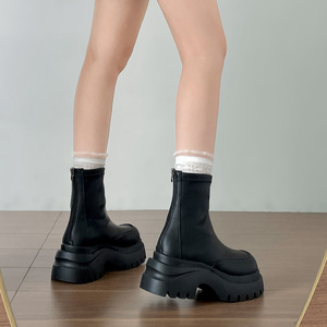 黑色英伦风小个子增高粗跟厚底马丁靴女款2025新款秋季复古短靴子