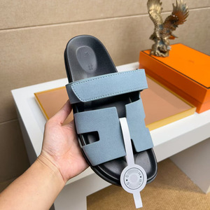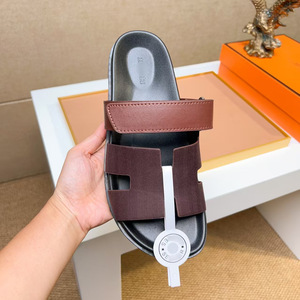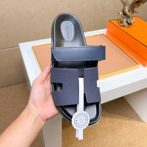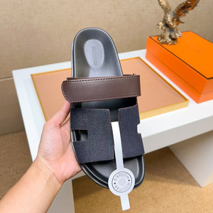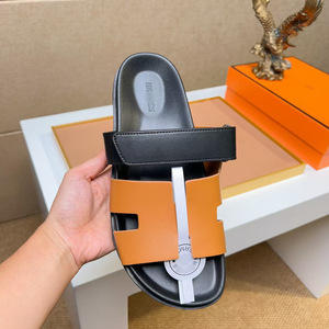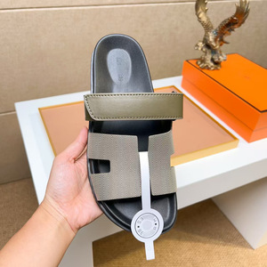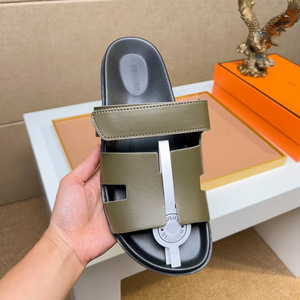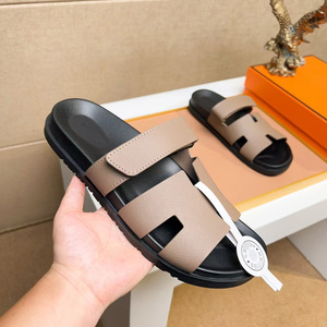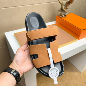 欧洲站二舅拖鞋头层牛皮软底舒适魔术贴外穿休闲拖鞋一字拖广州货