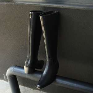 牛皮骑士靴女高筒长靴秋冬新款真皮方头粗高跟不过膝靴女直筒靴子