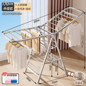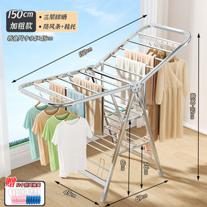 不锈钢1.6米三层+防风挂条晒鞋托+一体式滑轮-送晾晒器