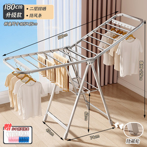 加粗不锈钢1.8米【双中轴】大二层+防风条+万向轮【送69个晾晒器】