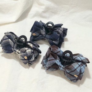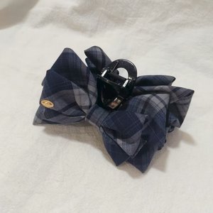 格序-深蓝色格子蝴蝶结抓夹
