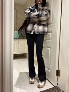 意大利M家!羽绒纱喇叭裤秒变超模腿高腰显瘦修身弹力微喇裤女秋
