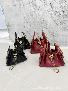 小香25C抽绳水桶包鱼子酱菱格链条包中古托特包大容量单肩腋下包