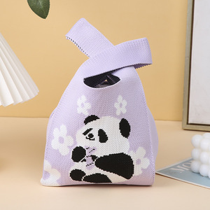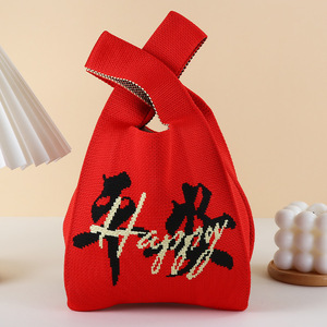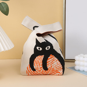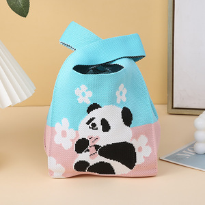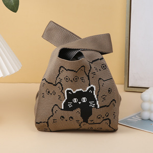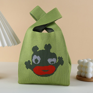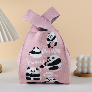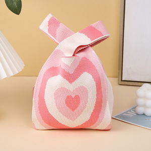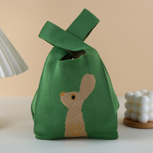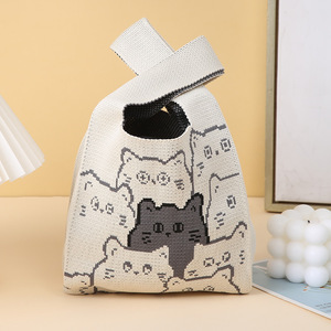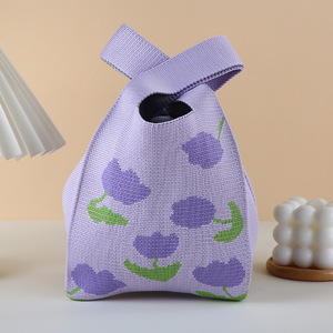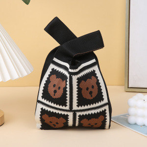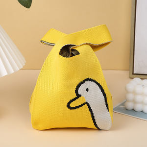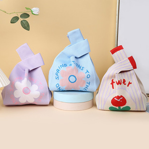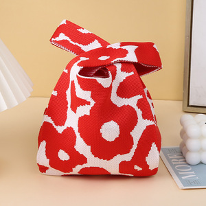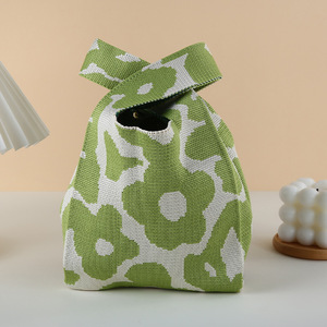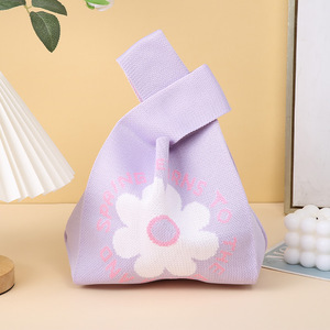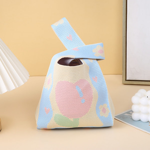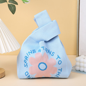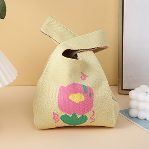 可爱花朵背心包女针织毛线水桶包手拎休闲托特包盒饭袋手提包批发