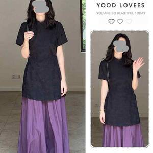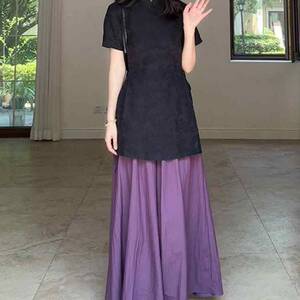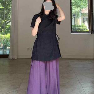 大码胖夏季新中式国风收腰显瘦盘扣上衣高腰宽松阔腿裤时尚套装