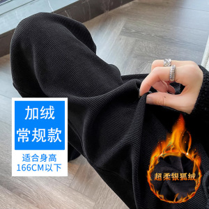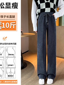 大码胖mm雪尼尔窄版阔腿裤女秋冬加绒小个子高腰垂感黑色休闲长裤