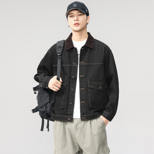 男士春秋季轻熟风纯色工装牛仔外套休闲宽松百搭男装上衣潮牌夹克