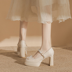 8065-Z97-L30 双层防水台超高玛丽珍高跟鞋小个子沙丁料婚鞋女粗