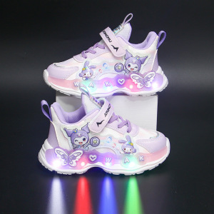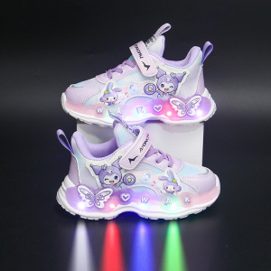 批发带灯女童运动鞋2025秋季新款网面透气儿童鞋皮面防水跑步鞋子