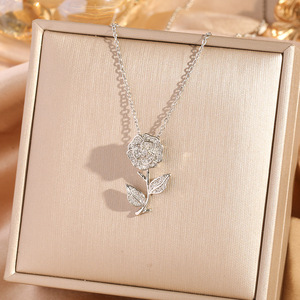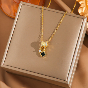 四叶草项链女时尚精致百搭高级感吊坠铜镶锆石轻奢锁骨链首饰批发
