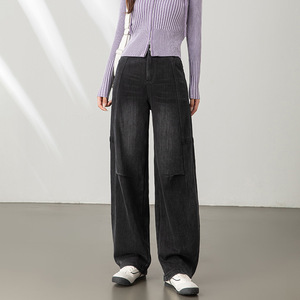 秋季新款弯刀牛仔裤高腰遮肉阔腿长裤直筒韩系复古文艺宽松休闲裤