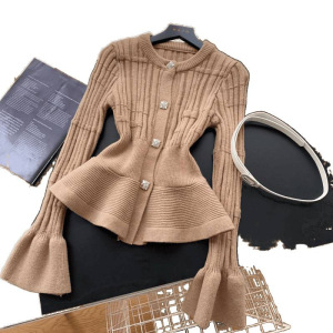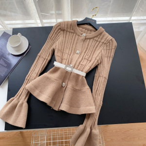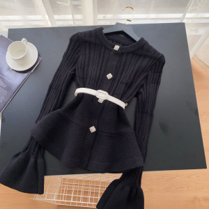 冬季法式轻奢千金风高档针织衫女喇叭袖内搭显瘦设计御姐气质上衣