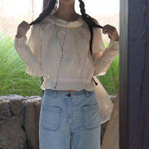 Ginger 早秋 兜兜船领 苎麻刺绣古典衬衫宽松透气小衫通勤气质