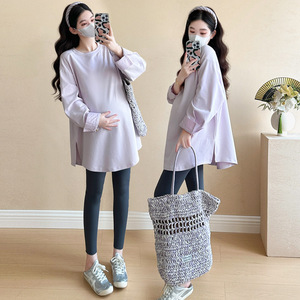 现货2025秋装新款孕妇装宽松时尚潮妈休闲大码新中式孕妇T恤