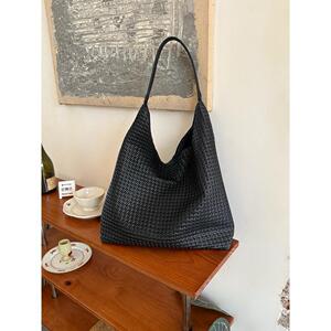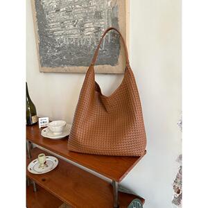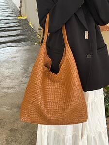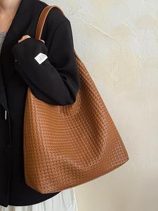 韩系复古编织纹托特包包女2025新款时尚水桶包大容量通勤单肩包