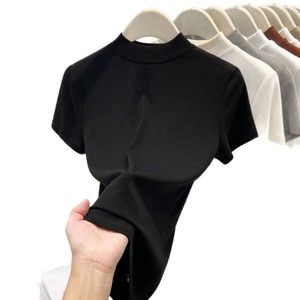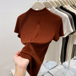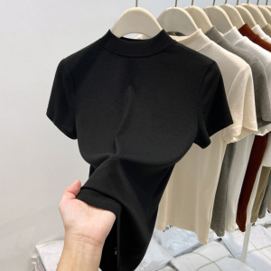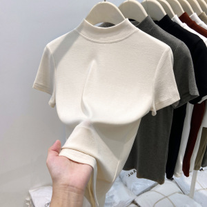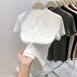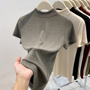 半高领短袖T恤女内搭2025春季新款修身显瘦打底衫洋气上衣