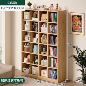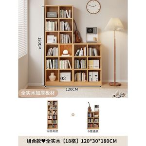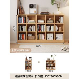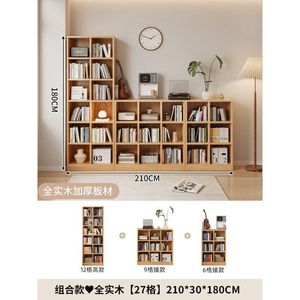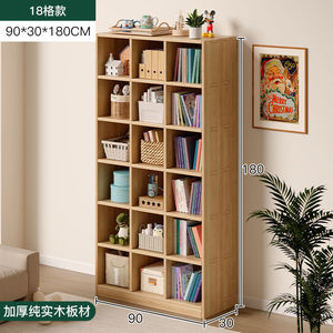 实木书架满墙落地置物架客厅展示收纳自由组合柜子多层儿童书柜