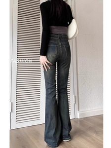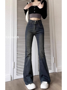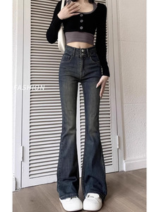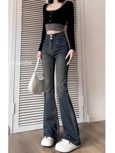 微喇牛仔裤女2025年春秋新款设计感显瘦复古高腰拖地马蹄喇叭裤子