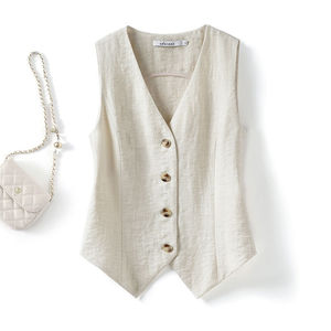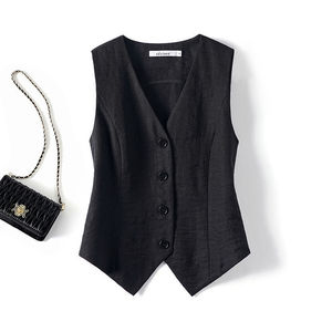 老钱风马甲夏季薄款女外搭坎肩2025新款修身短款无袖西装亚麻背心