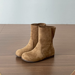 女王范爆款美拉德复古平底短靴女款2025新款秋季内增高瘦瘦靴子