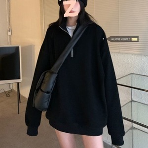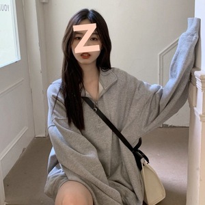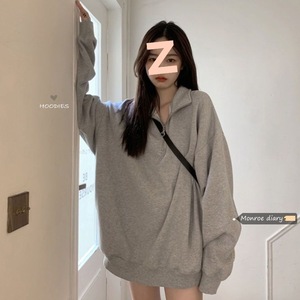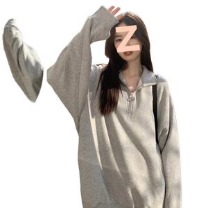 灰色卫衣女秋冬季2025新款慵懒风POLO宽松中长款上衣服ins潮外套