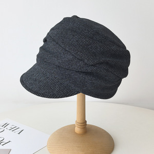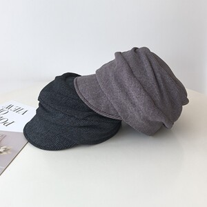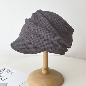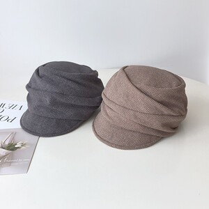 日系简约褶皱鸭舌帽子女春秋冬季新款显脸小堆堆帽韩版报童帽百搭