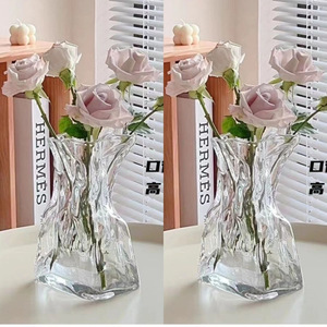 高级感简约创意不规则花瓶透明玻璃客厅桌面插花水养ins装饰摆件