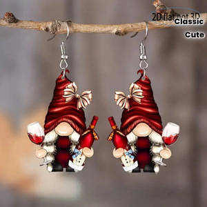 迷人圣诞侏儒与圣诞老耳环亚克力可爱经典风格创意圣诞节日耳环