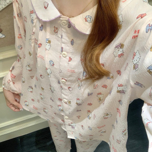 云朵棉睡衣女款春秋季可爱公主风娃娃领卡通长袖家居服套装可外穿