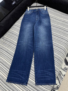 25早秋新款南油高定Cha简约休闲内里碎花拼接经典渐变色牛仔裤