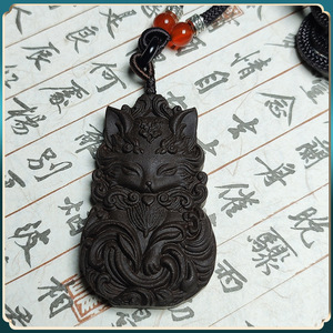 天然香材龙涎香古法合香香牌 九尾狐狸 单面吊坠 男女挂件 桃花