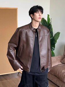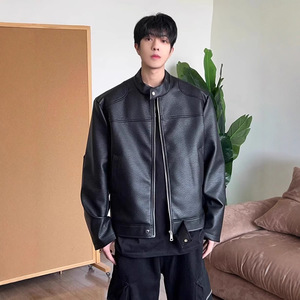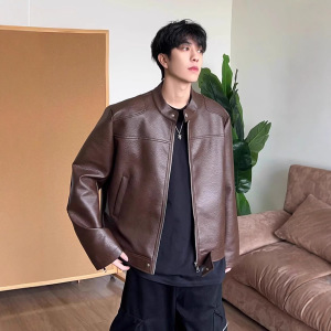 皮衣短款春秋款夹克休闲机车帅气上衣春秋百搭立领外套男夹克男装