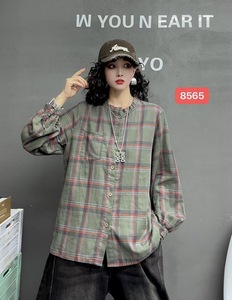 双纱格子衬衫女 2025秋新款文艺宽松花边领长袖开衫衬衣 8565