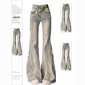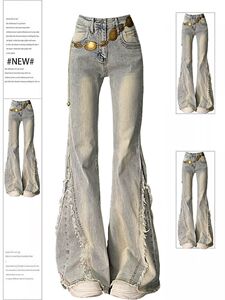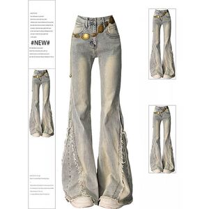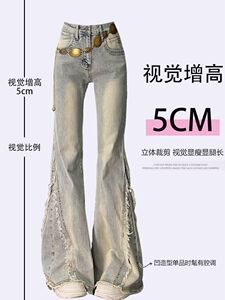 毛边设计感水洗做旧牛仔裤女2025春秋新款高街辣妹弹力喇叭马蹄裤