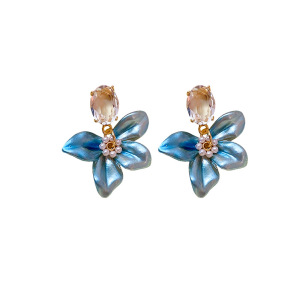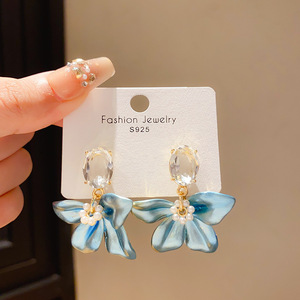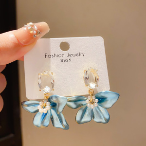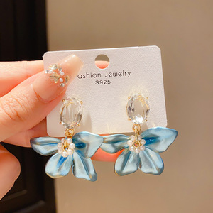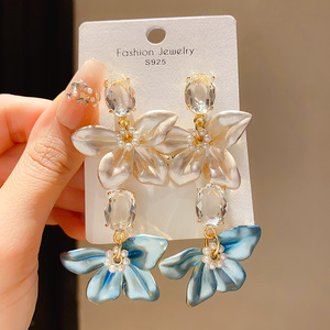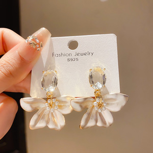 银针甜美滴油镶钻仿珍珠花朵耳环法式复古小众气质高级感耳饰女