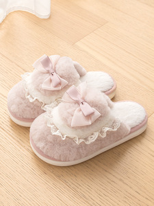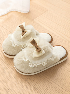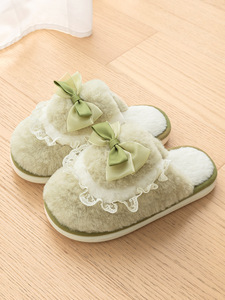 蝴蝶结棉拖鞋女款冬季2025新款情侣可爱家居毛绒保暖毛毛拖鞋