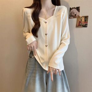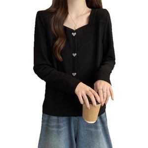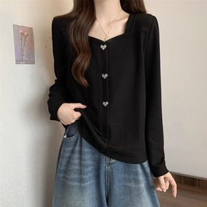 大码胖mm设计感方领拼接长袖t恤女2025春秋新款洋气显瘦遮肉上衣