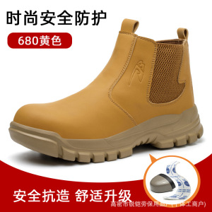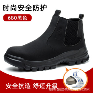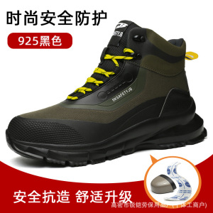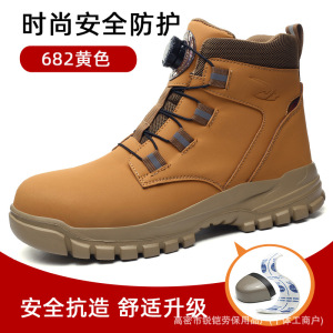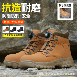 高帮防泼水耐磨抗造劳保靴男 旋转纽扣防砸防刺穿轻便舒适工作鞋