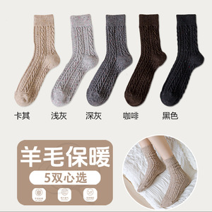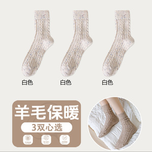 羊毛厚袜子女款中筒袜秋冬加厚保暖羊绒袜麻花纹点子纱堆堆袜长袜