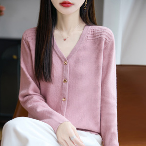 法式早秋新款v领长袖打底衫韩系高级感百搭显瘦开衫针织女装上衣