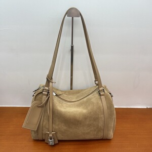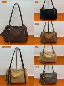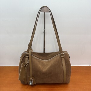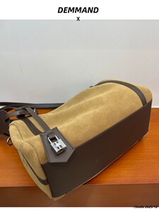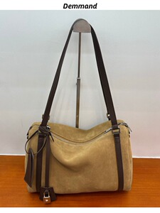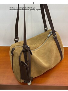 磨砂牛皮波士顿保龄球包女复古百搭通勤单肩包大容量麂皮绒托特包
