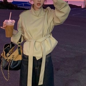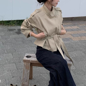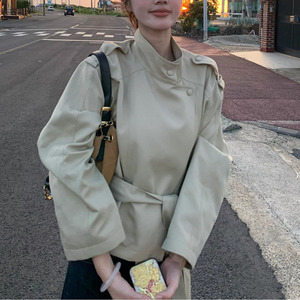 花花慢调巴黎~韩系秋季短款卡其色风衣外套女小个子薄款上衣