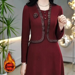 加绒加厚高档冬季2025秋冬季新款气质名媛妈妈装假两件连衣裙女