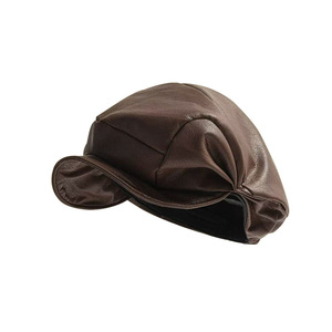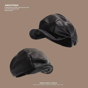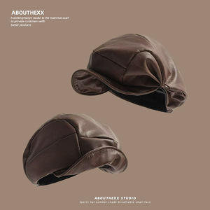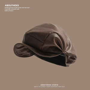 2025新款韩版复古褶皱PU帽子女贝雷帽时尚百搭显脸小鸭舌八角帽潮